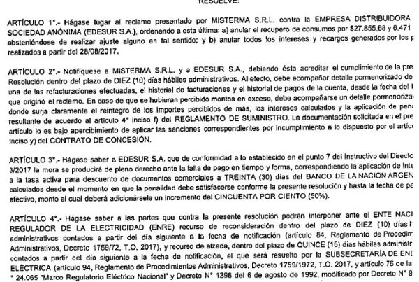 Según un peritaje, Edesur “sin planificación ni previo aviso al usuario sobre el día y la hora, interrumpió el suministro de energía como consecuencia de maniobras en la red de media tensión para normalizar el alimentador de la subestación Remedios de Escalada”.